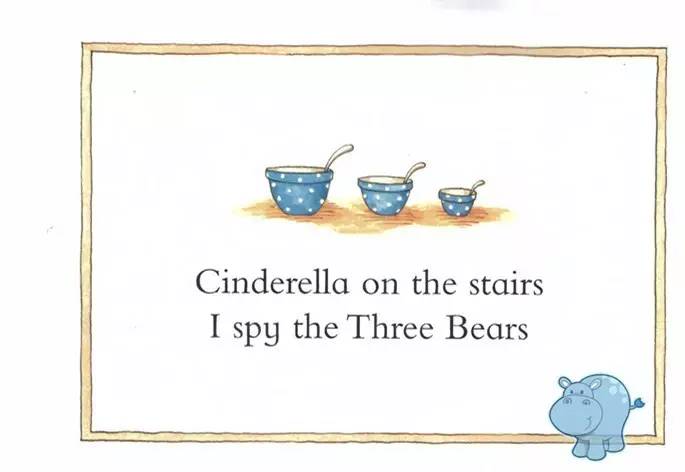「Each Peach Pear Plum」从几个水果说起,逐步引出不同的角色穿插在起伏跌宕的故事中,故事的情节要靠读者自己从绘本插图中挖掘,其乐无穷。故事的角色,浓缩了英国历代不少鼎鼎大名的童话人物,拇指仙童、哈伯德大妈、灰姑娘、三只小熊、Baby Bunting 、牧羊女、杰克与吉尔、坏巫婆、罗宾汉,随便挑一个人物出来都可以给小朋友们洋洋洒洒讲一大篇,为以后的升级阅读奠定基础。