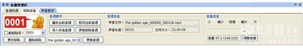 如果想修改标贴,可以单击标贴,进入到该标贴的管理界面。可以对该标贴的声音进行替换或者剪切,另外还可以调整该段声音音量的大小。